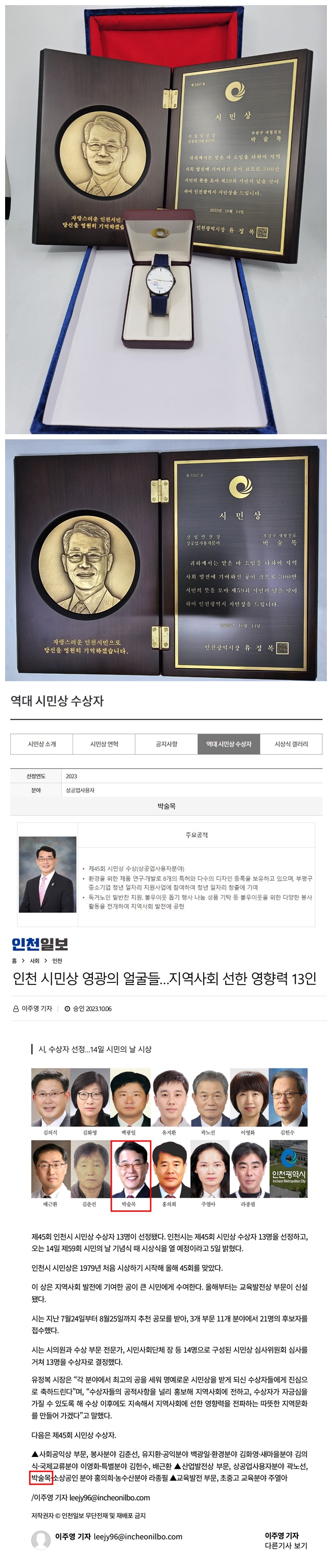 제59회 인천 시민의 날 기념 박술목 대표 시민상 수상(산업발전상)