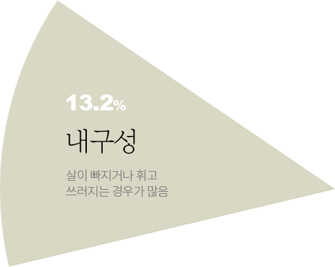 사용 기간에 비례하여 살이 빠지거나 휘는 등 상대적으로 내구성이 나쁨 |