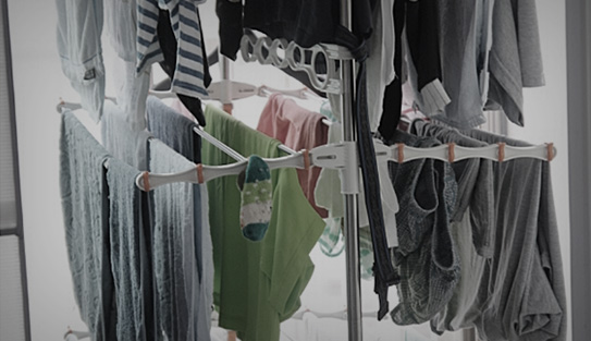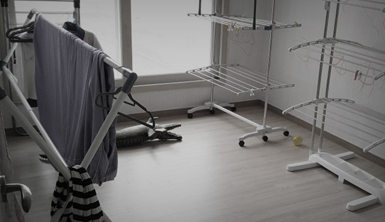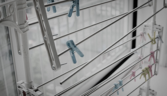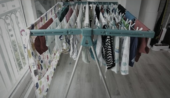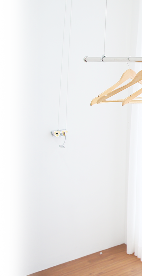 베란다 환경에 맞추어 최대한 빨래가 서로 닿지 않게 설치할 수 있으며 최대 50개의 옷걸이 빨래까지 가능함. |