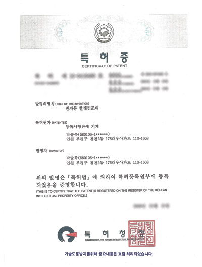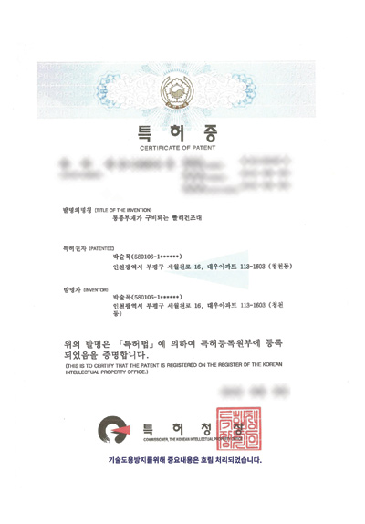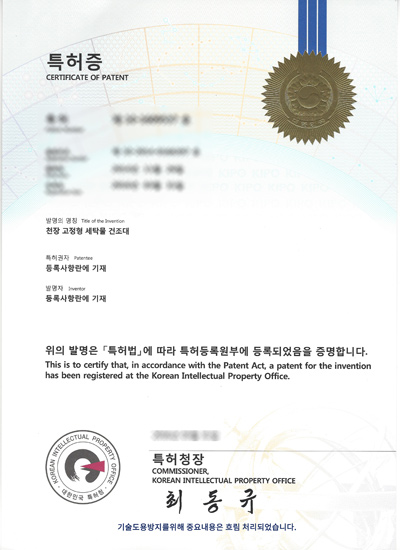 [특허증] 음이온 발생 램프와 모기퇴치용 램프가 설치된 전자동 리모콘 빨래건조대