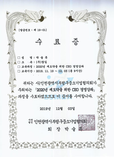 [수료증] 2020년 재도약을 위한 CEO 경영강좌